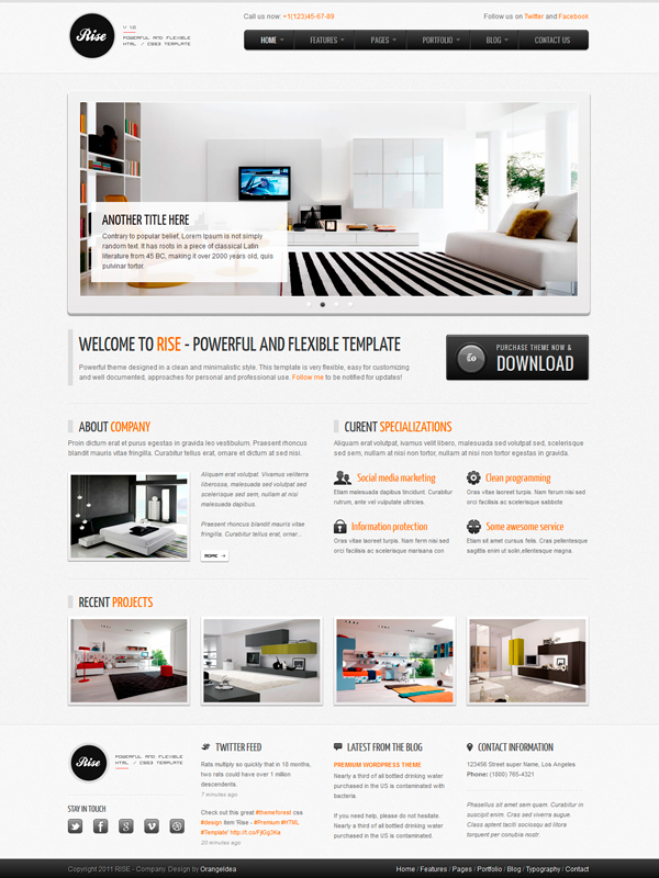 Powerful theme designed in a clean and minimalistic style. This template is very flexible, easy for customizing and well documented, approaches for personal and professional use.